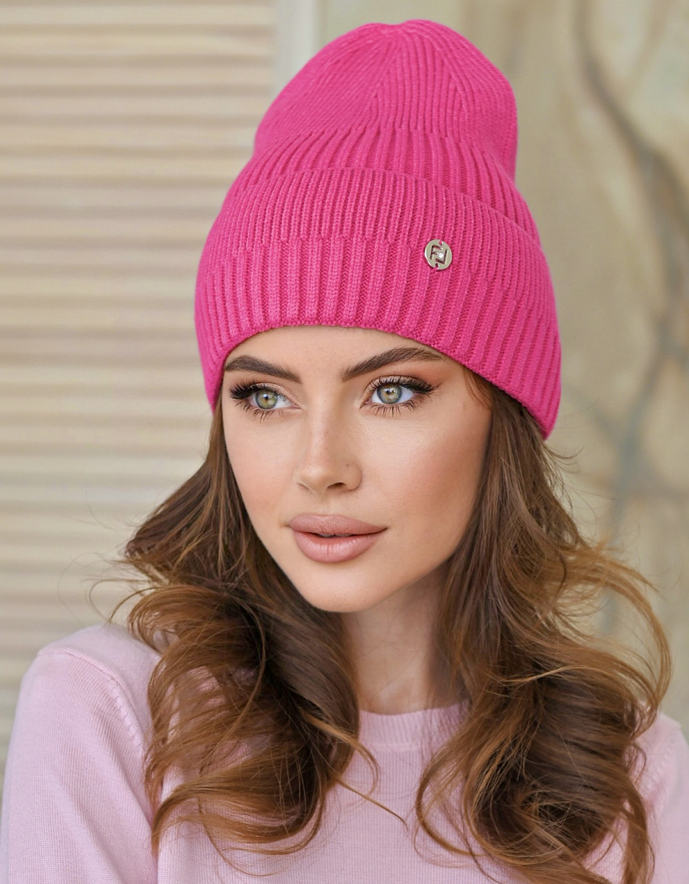 В'язана шапка з закотом , виготовлена з м'якої, еластичної пряжі. Оригінальний дизайн цього аксесуара підійде як до спортивної куртки, так і до модного пальта.